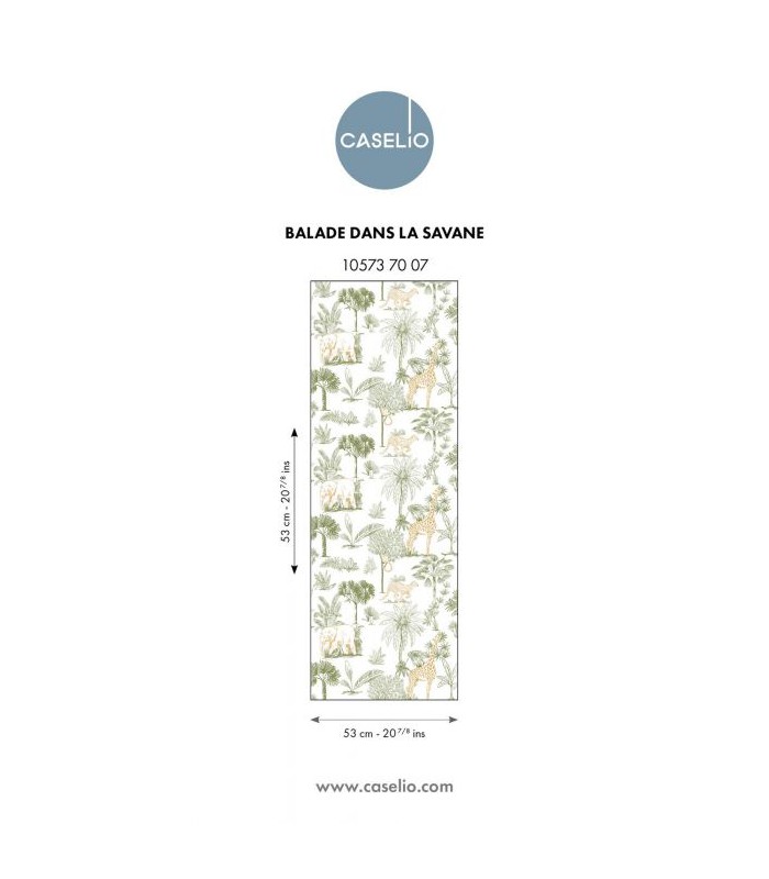 Papier Peint BALADE DANS LA SAVANE VERT - Collection LES MINIS MONDES - CASELIO - Réf. MNM105737007