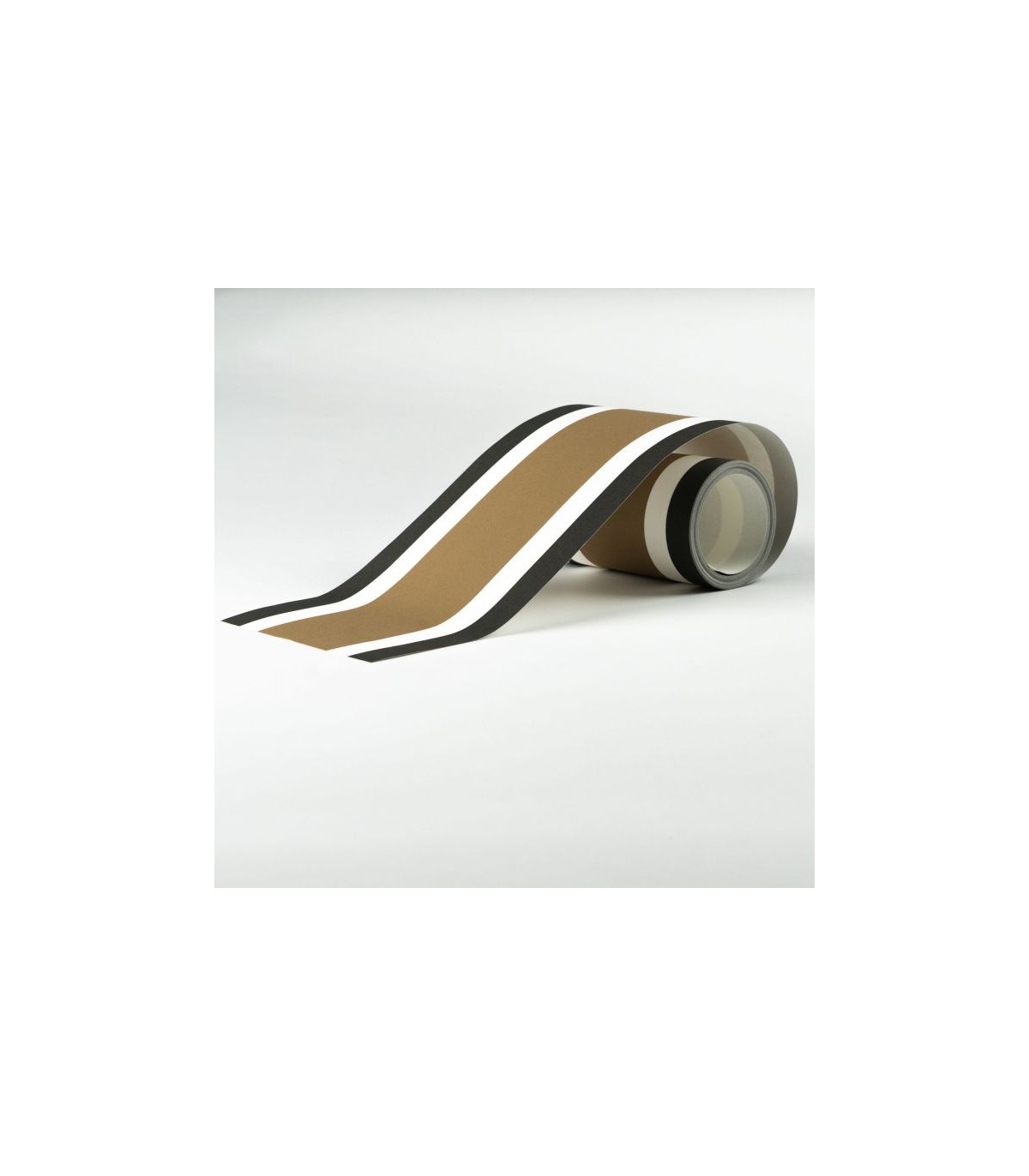 Méli-mélo de rayures Moins étroite que les galons, la frise L’Elégante additionne avec brio les rayures : 2 fines bandes entourent une plus large contrastante, sur un fond blanc. Ce dessin toute en finesse sur 13 cm de haut autorise toutes les déclinaisons colorées.