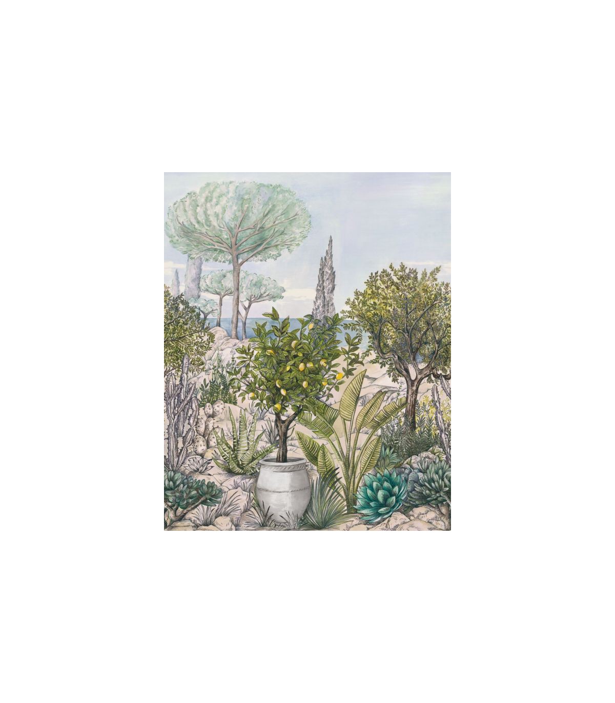 Le papier peint panoramique prend tout son sens avec ce paysage provençal avec vue sur mer. Son trait de crayon si spécifique et ses jolies couleurs douces évoquent les paysages des livres de gravure. Un paysage réaliste et authentique pour apporter un peu de Méditerranéen dans la déco de la maison.