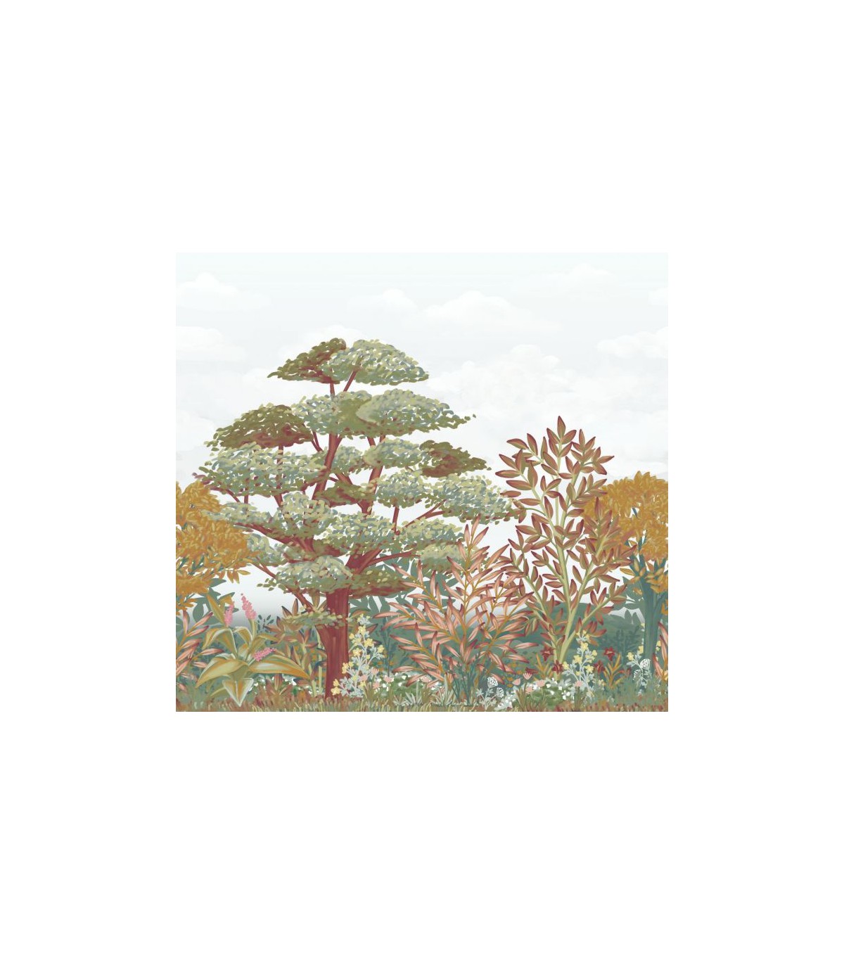 Inspiration plus automnale pour ce papier peint panoramique qui met à l’honneur l’emblème de nos cousins québécois : l’érable. Ce motif se décline dans une belle gamme de coloris chaleureux et dans des traits inspirés de l’aquarelle. Une façon inédite de reverdir la déco.