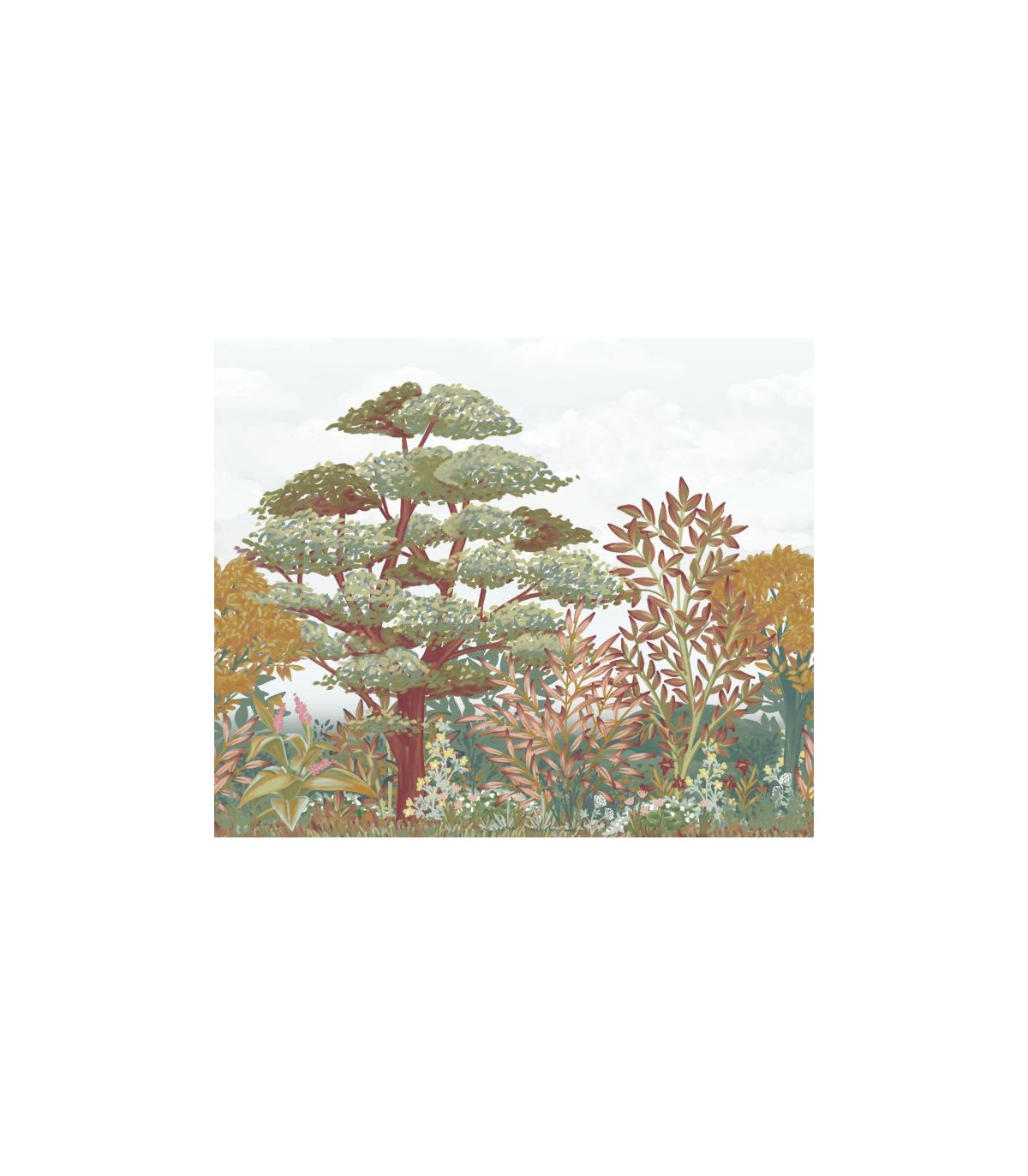 Inspiration plus automnale pour ce papier peint panoramique qui met à l’honneur l’emblème de nos cousins québécois : l’érable. Ce motif se décline dans une belle gamme de coloris chaleureux et dans des traits inspirés de l’aquarelle. Une façon inédite de reverdir la déco.