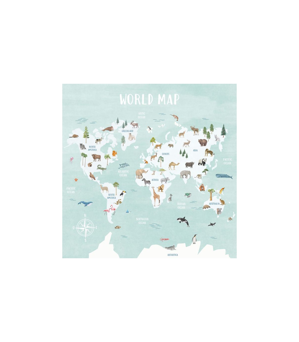Une carte du monde en papier peint pour faire en un coup d’œil le tour du monde des espèces animales. En voilà un panoramique à la fois beau et utile qui trouvera sa place sur le mur d’un bureau, d’une chambre et pourquoi pas d’une salle de classe.