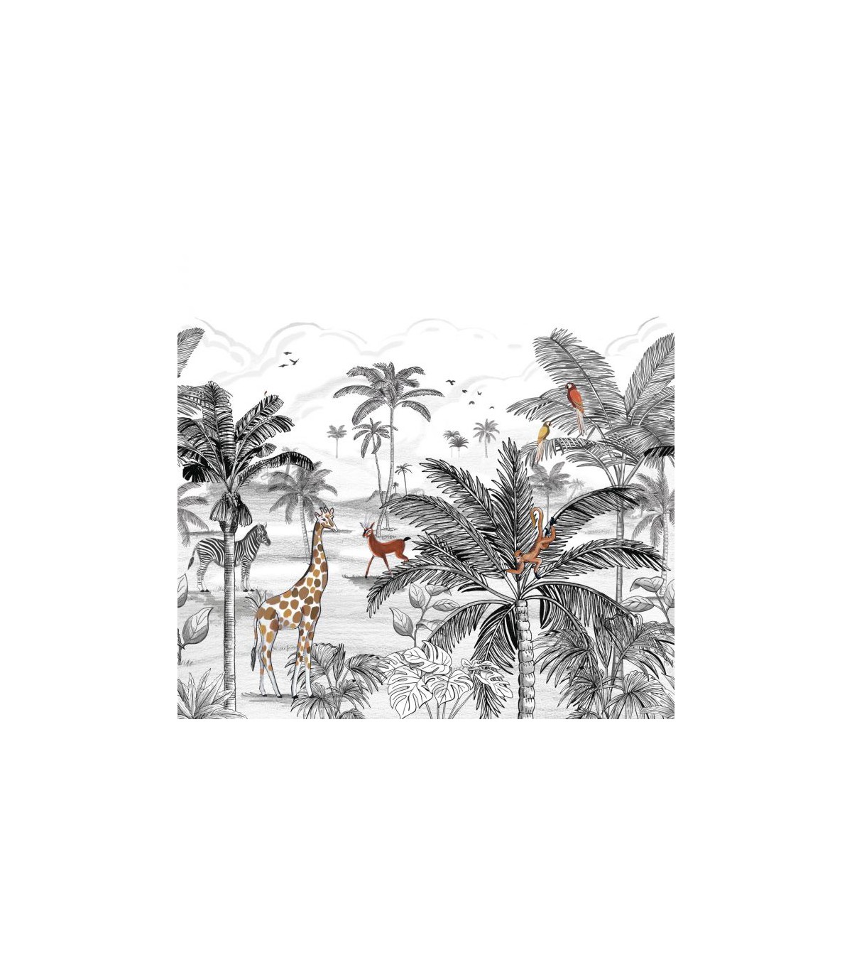 Hop, on prend l’appareil photo et on s’offre un safari photo sans bouger d’ici ! C’est à travers deux motifs au style différent que s’ouvre le monde de la jungle. Le premier très animalier nous offre une vue de safari avec ses animaux dessins au crayon. Le second plus végétal nous plonge dans la luxueuse jungle. En voyage !