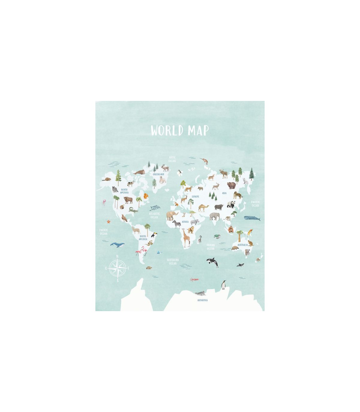 Une carte du monde en papier peint pour faire en un coup d’œil le tour du monde des espèces animales. En voilà un panoramique à la fois beau et utile qui trouvera sa place sur le mur d’un bureau, d’une chambre et pourquoi pas d’une salle de classe.