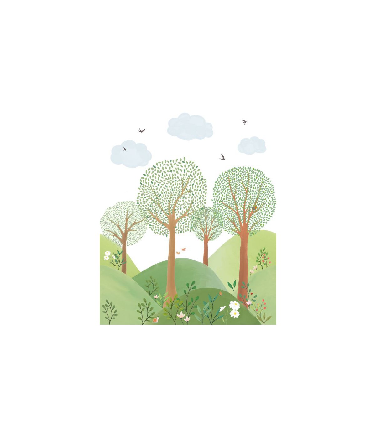 C’est un paysage de forêt de livres de contes qu’on vous propose avec ce panoramique aux coloris lumineux et naïfs. Le petit plus : on vous laisse la liberté de positionner les animaux de la forêt (livrés sur une planche autocollante) là où vous voulez.