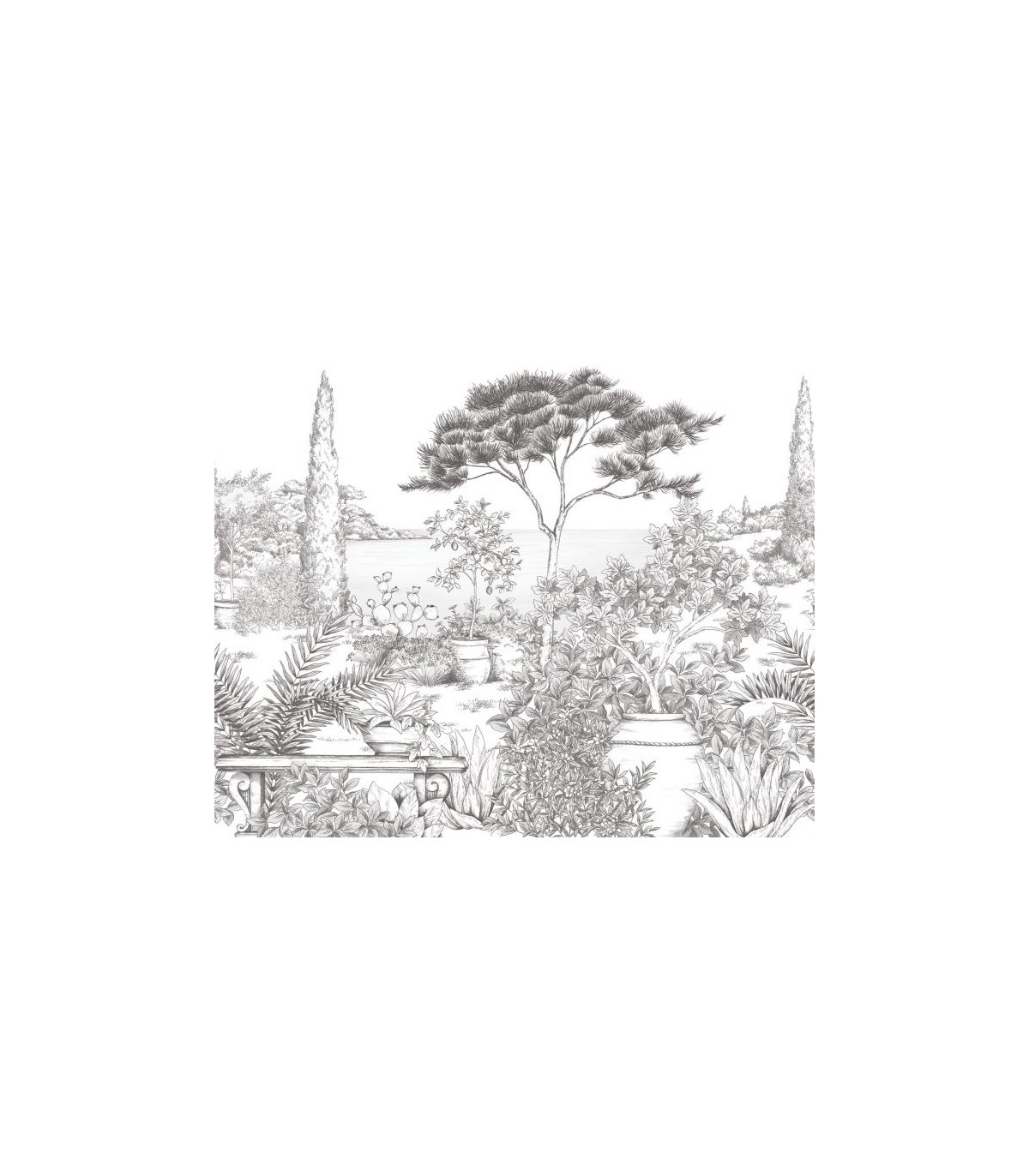 Imaginez-vous transporté au cœur d’un jardin méditerranéen... Ce panoramique est une douce composition à l’encre de Chine, délicatement rehaussée d’aquarelle, rendant hommage aux luxuriants parcs de la Côte d’Azur, entre plantes exotiques, poteries d’Anduze et terrasses baignant dans une lumière tamisée Séguret Décoration. Le noir fusain confère au décor une profondeur à la fois poétique et énigmatique.