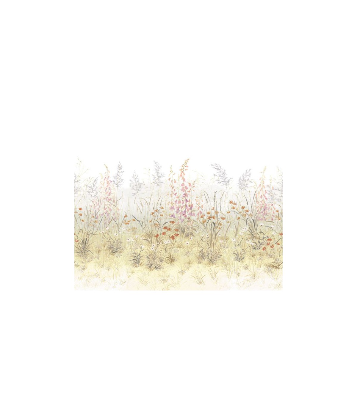 Vue depuis le jardin de l'enfance Un peu à l'abandon, le jardin de la maison d'été explose de fleurs et de senteurs quand on y arrive pour les vacances. C'est cette douce sauvagerie que dépeint cette prairie peinte à la gouache, mélangeant herbes et fleurs en un joyeux fouillis.