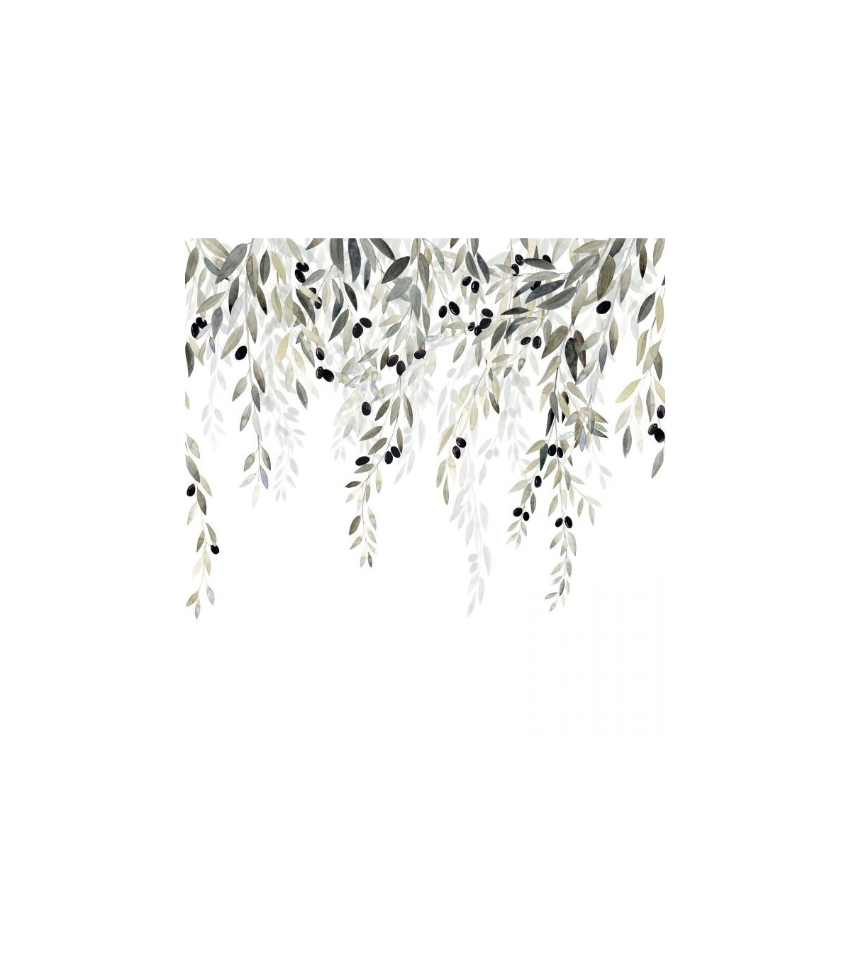 Une branche d'olivier pour la paix Symbolique de la paix, l'olivier présente aussi un feuillage d'une élégance rare, ponctuée de fruits noirs gonflés de promesses. Ce dessin à l'aquarelle fait descendre sur les murs des rameaux d'olivier vénérable, comme si on s'était juste attardé devant lui.