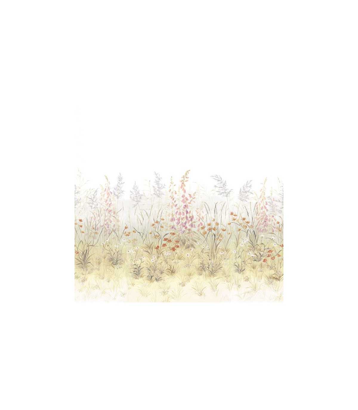 Vue depuis le jardin de l'enfance Un peu à l'abandon, le jardin de la maison d'été explose de fleurs et de senteurs quand on y arrive pour les vacances. C'est cette douce sauvagerie que dépeint cette prairie peinte à la gouache, mélangeant herbes et fleurs en un joyeux fouillis.