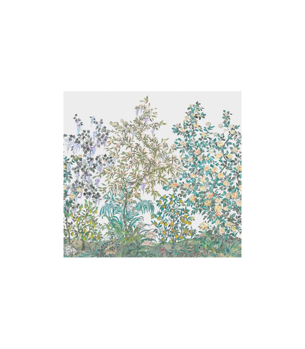 Un gourmand verger d'agrumes Oranger, clémentinier, citronnier se bousculent sous le pinceau de l'artiste. Ce verger planté d'agrumes pourrait se trouver en Corse, en Italie ou en Espagne. Un coin de paradis qui fleure bon le zeste d'orange et de citron et où profiter du temps qui passe, tout en décontraction.