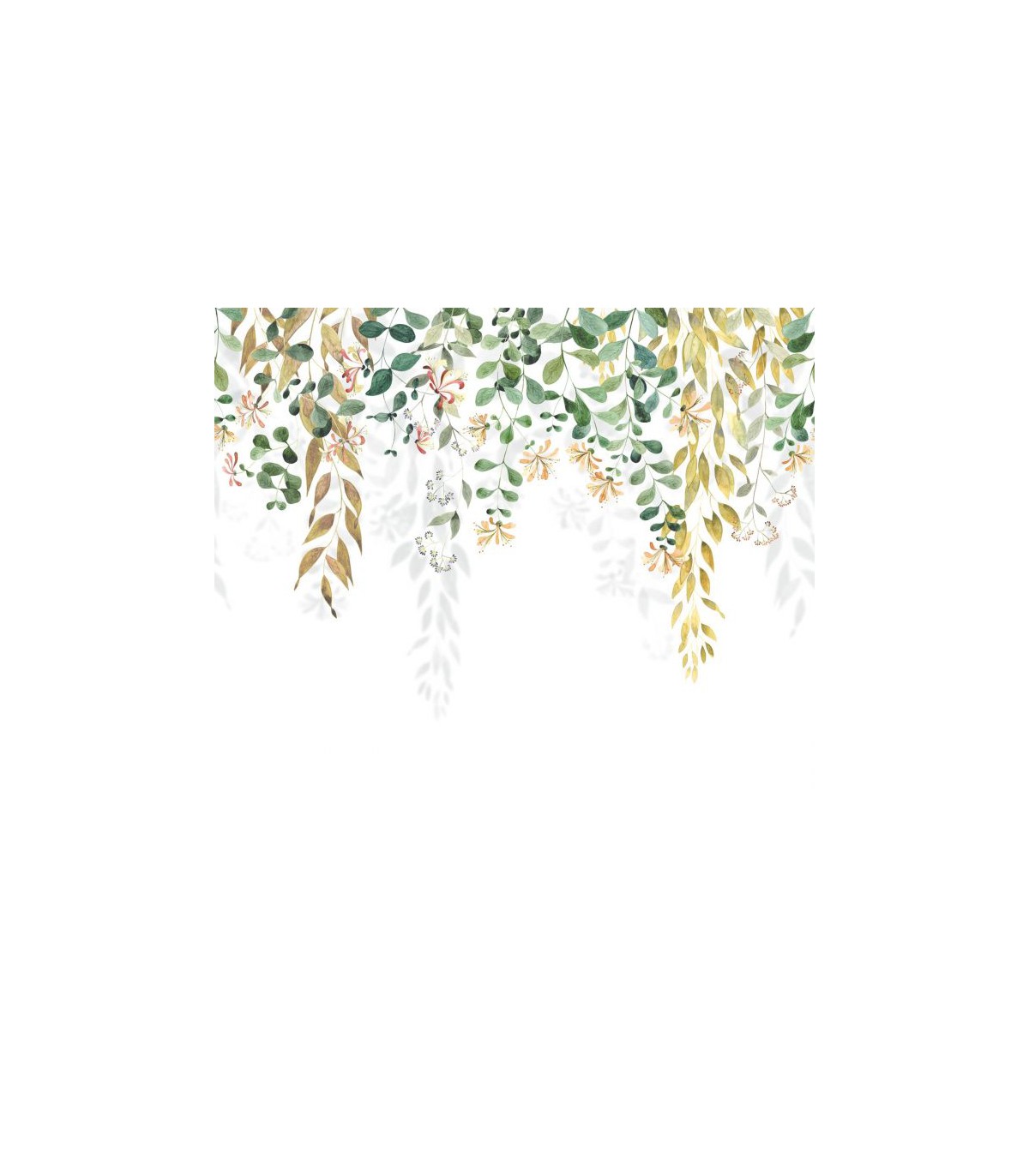 Sur 3 mètres se déploie un chèvrefeuille peint avec maestria. Sur cette aquarelle, des feuilles de vigne vierge vermillon et des fleurs jaunes odorantes ponctuent le panoramique Honeysuckle de la plus belle des manières. Astucieux, des jeux d’ombre offrent au tout une profondeur inégalée.
