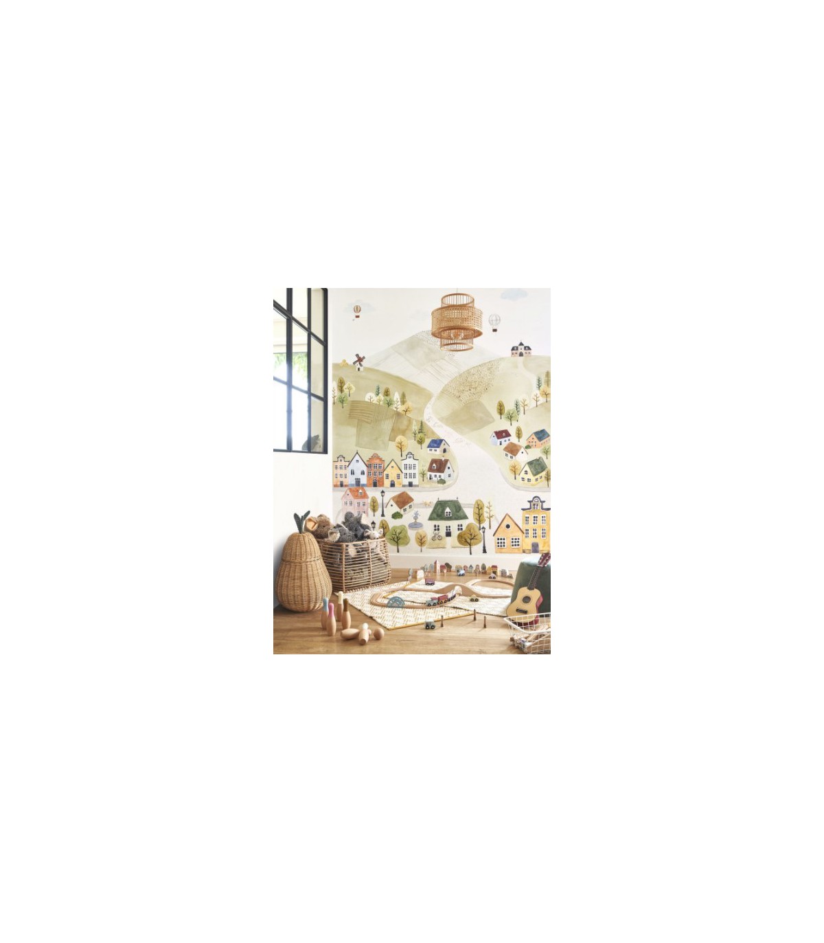 Le panoramique Welcome to the Village Multico S, issu de la collection Once Upon a Time 2 de Casadeco, plonge les enfants dans un village animé et coloré, où maisons, arbres, personnages et animaux s’animent dans un univers illustré à la main. Ce décor ludique et multicolore stimule l’imagination et la créativité, tout en apportant une atmosphère chaleureuse et joyeuse à la chambre d'enfant ou à la salle de jeux.