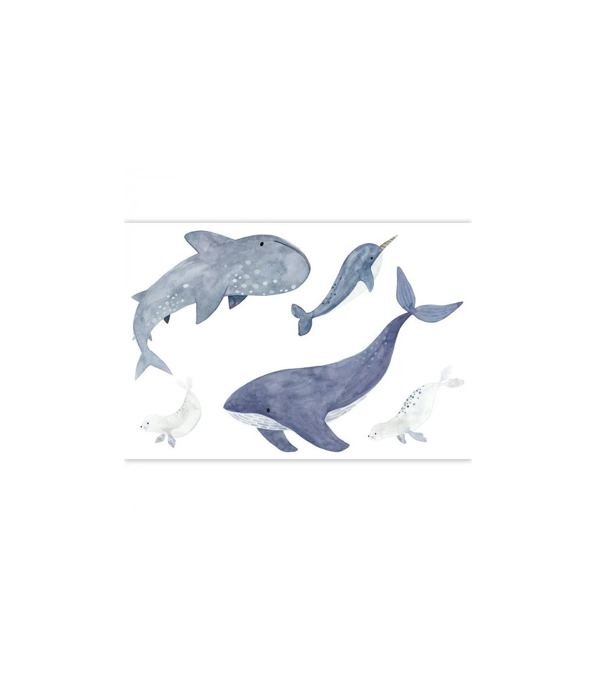 Le panoramique Sea Life Spray Up Bleu, issu de la collection Once Upon a Time 2 de Casadeco, immerge les enfants dans un monde sous-marin captivant. Sur un fond blanc les poissons, balaines bleues, otarie, phoque et narval s’animent dans un univers illustré à la main, créant une scène ludique et poétique qui stimule l’imagination et invite à explorer les merveilles de l’océan avec émerveillement.