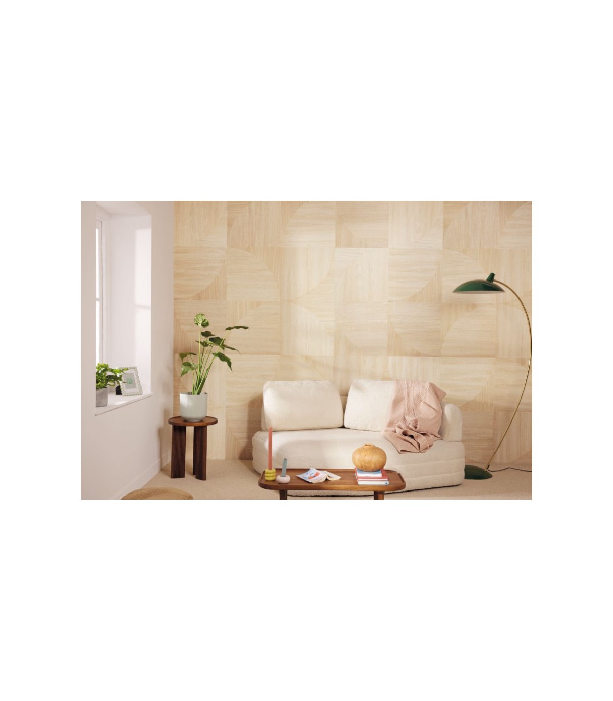 En hiver on fait feu de tout bois comme en témoigne ce motif inspiré de la marqueterie. Avec un papier peint panoramique effet trompe l'œil à choisir en plusieurs dimensions, la forêt trouve à sa manière sa place dans la déco.