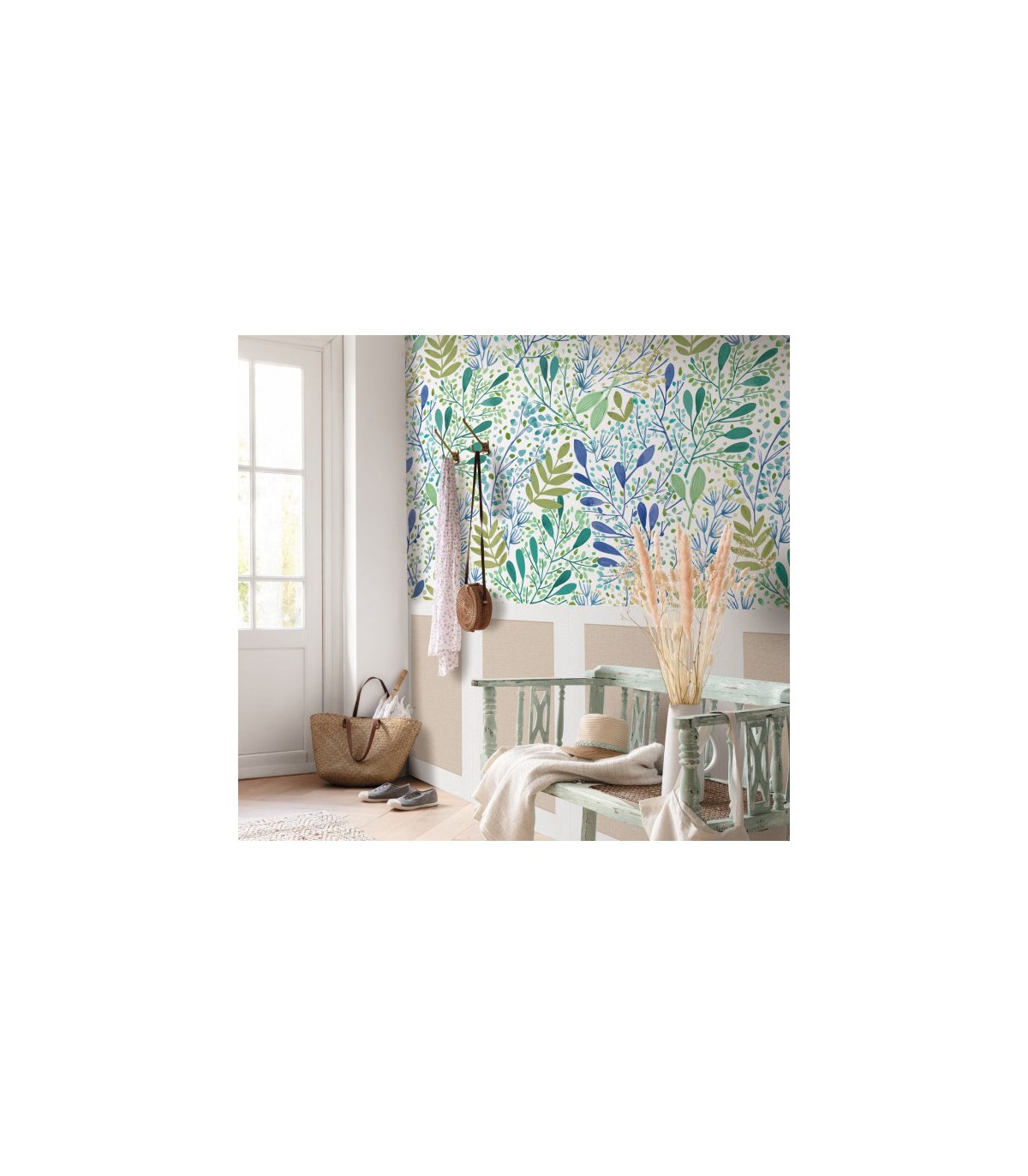 Nouveau : on donne un effet chic à nos murs sans trop de travaux avec un papier peint trompe l’œil dessinant un soubassement EFFET JUTE (hauteur : 80 cm) décliné en 6 coloris coordonnables.