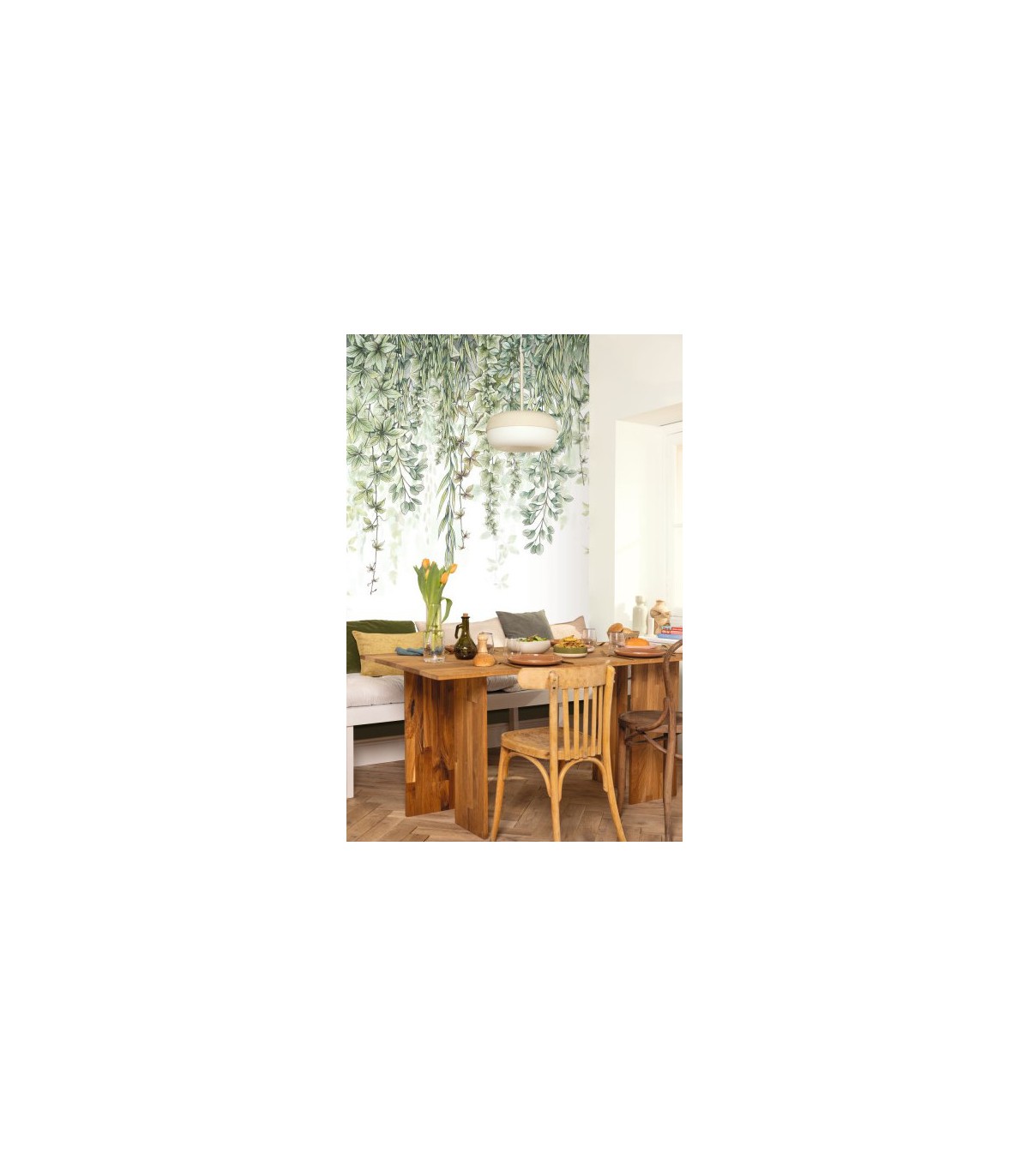 On met de la nature dans la déco avec deux panoramiques, un inspiré des toiles d’artistes ou un des trompe l’œil végétaux. On joue même l’effet verrière d’artiste ou arches de patio pour un bel effet de profondeur toujours en intérieur.