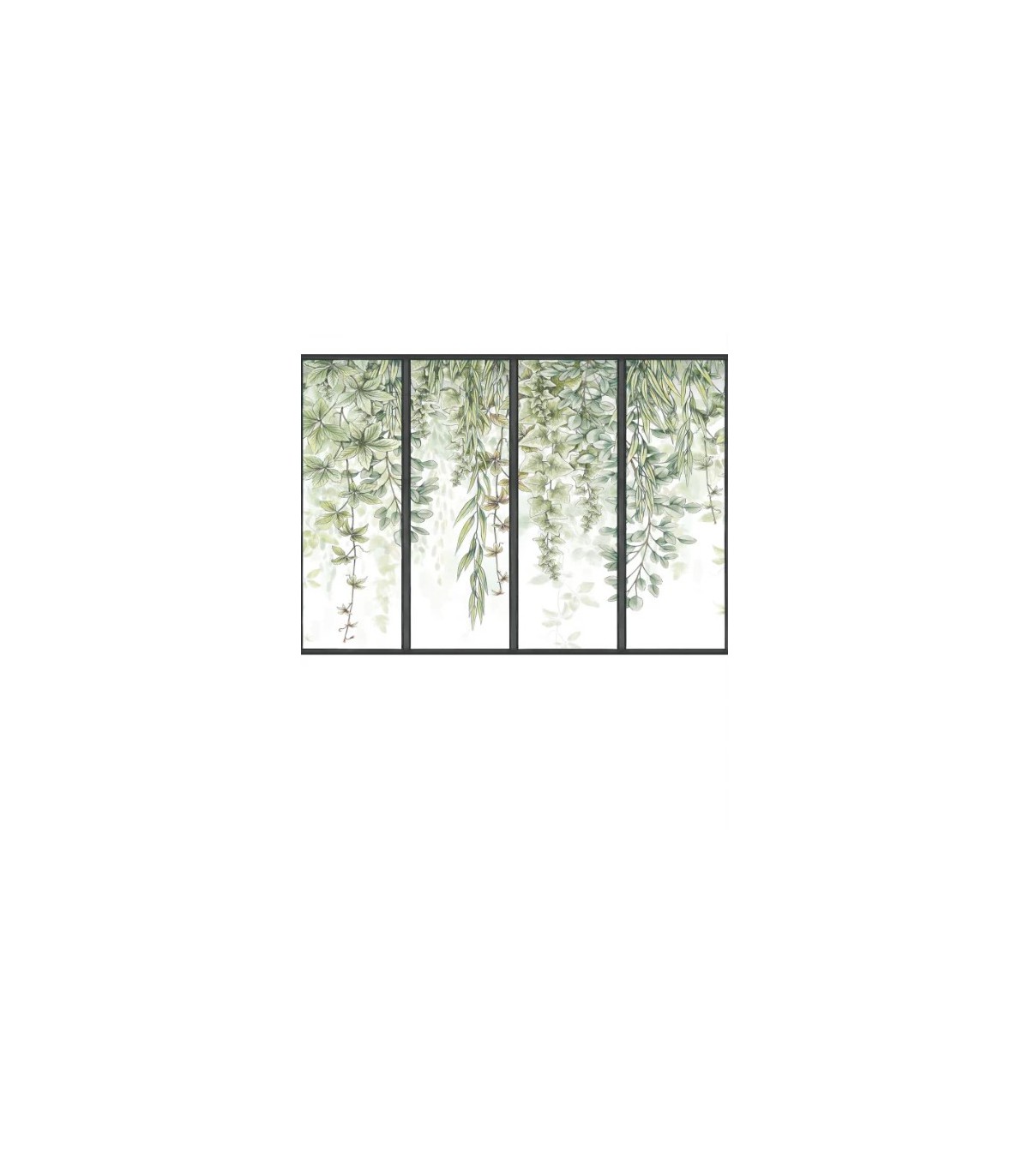 On met de la nature dans la déco avec deux panoramiques, un inspiré des toiles d’artistes ou un des trompe l’œil végétaux. On joue même l’effet verrière d’artiste ou arches de patio pour un bel effet de profondeur toujours en intérieur.