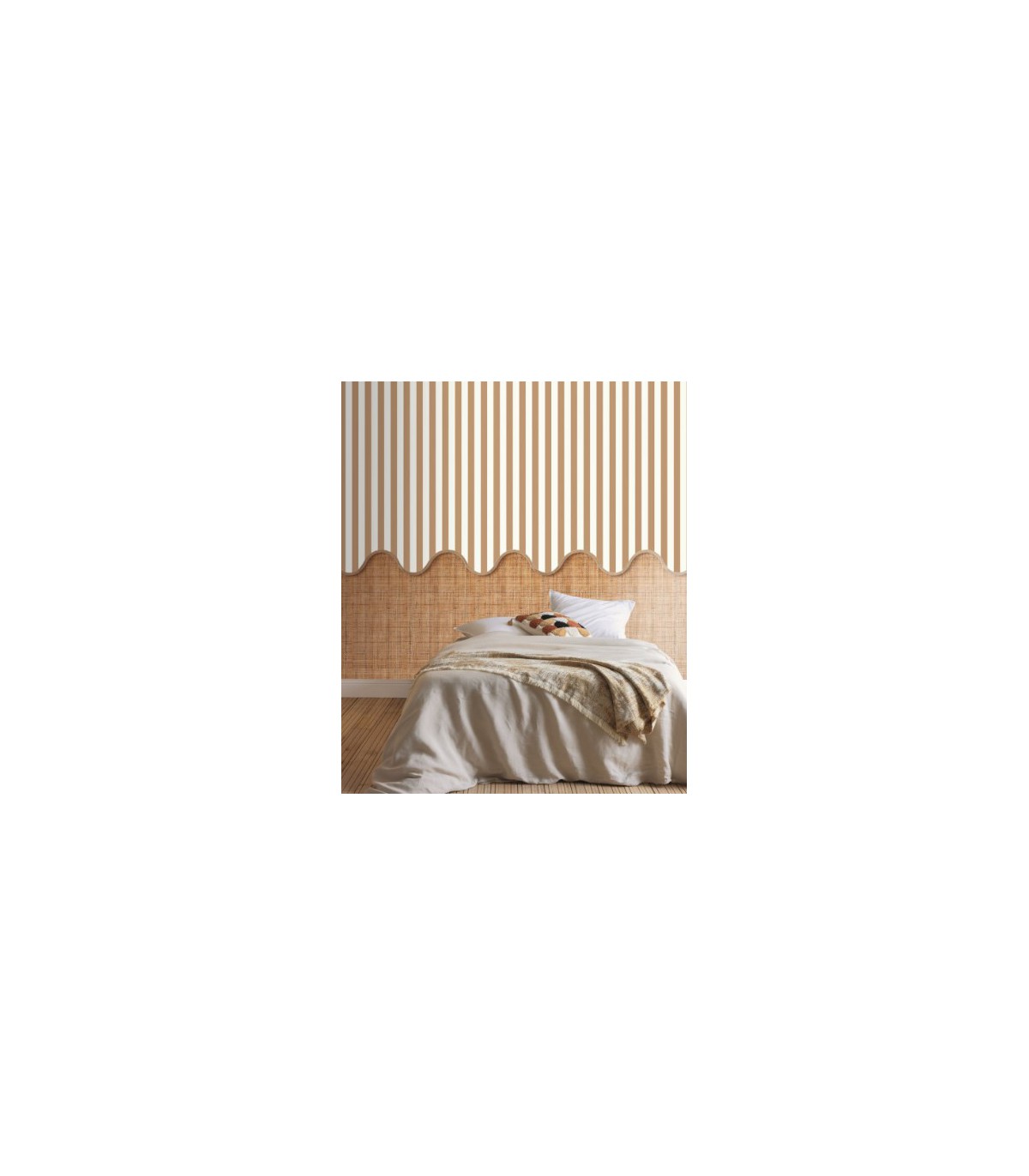 Le textile dans la déco fait son retour. On en a fait une série de papiers peints trompe l’œil pour des soubassements alliant peinture et canage. Effet garanti et parfait aussi en tête de lit !
