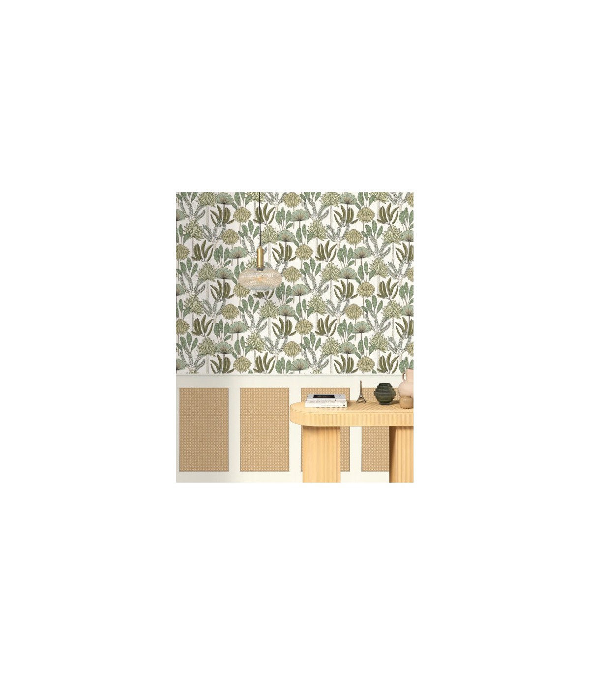 Le textile dans la déco fait son retour. On en a fait une série de papiers peints trompe l’œil pour des soubassements alliant peinture et canage. Effet garanti et parfait aussi en tête de lit !