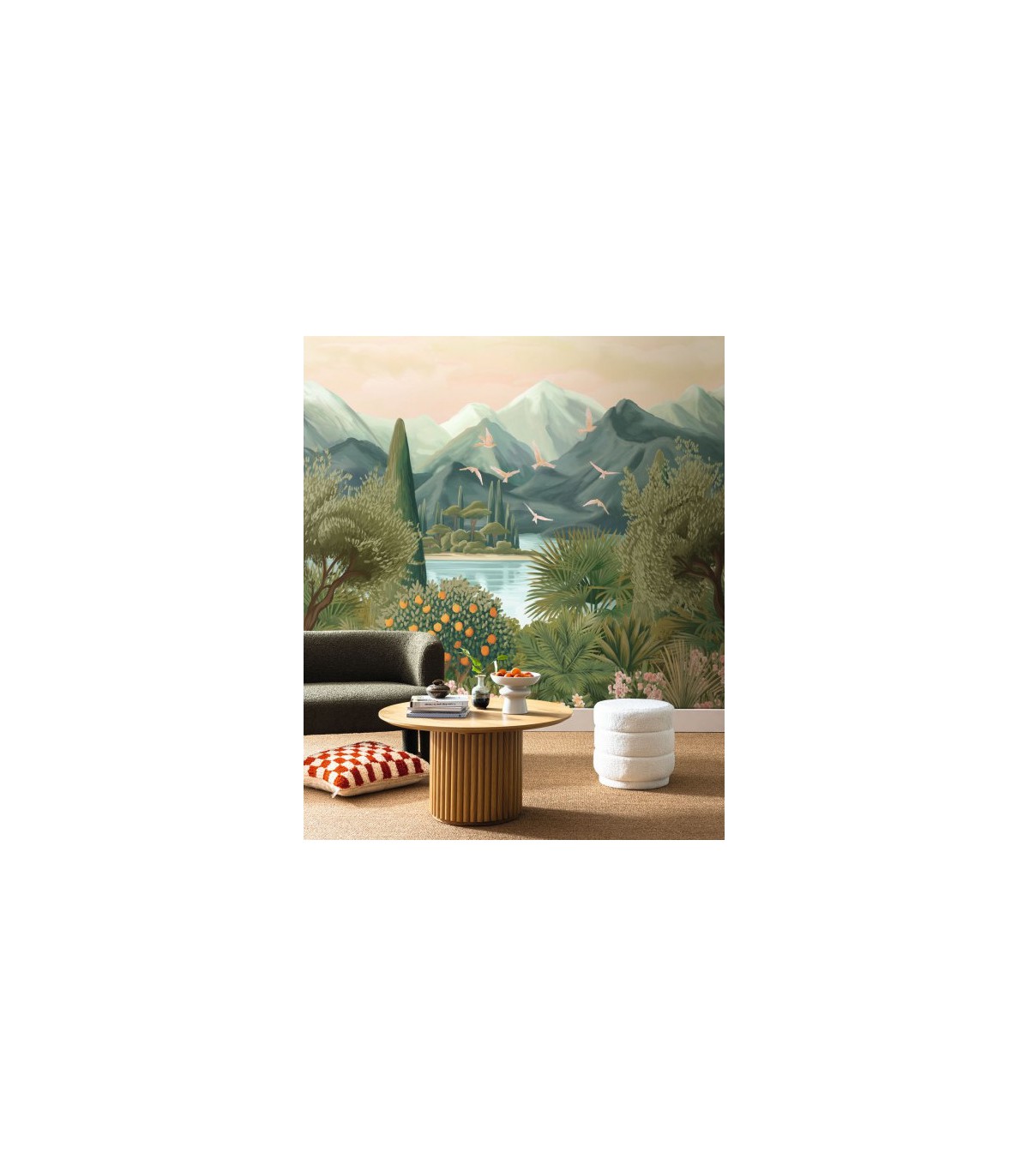 On met de la nature dans la déco avec deux panoramiques, un inspiré des toiles d’artistes ou un des trompe l’œil végétaux. On joue même l’effet verrière d’artiste ou arches de patio pour un bel effet de profondeur toujours en intérieur.