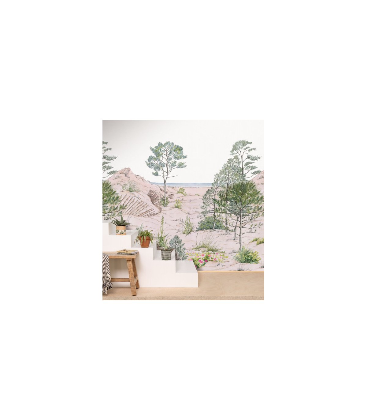 On met de la nature dans la déco avec deux panoramiques, un inspiré des toiles d’artistes ou un des trompe l’œil végétaux. On joue même l’effet verrière d’artiste ou arches de patio pour un bel effet de profondeur toujours en intérieur.