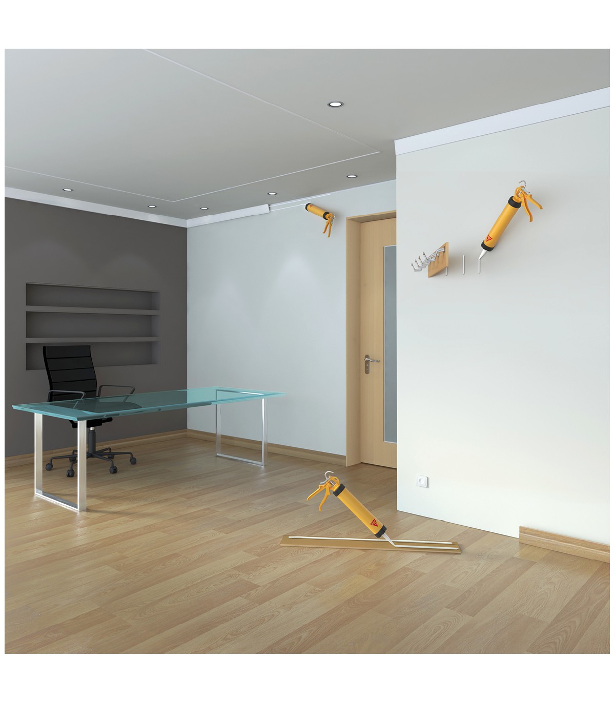 Son application au pistolet permet une pose précise et maîtrisée. La formation de peau rapide permet un positionnement efficace des éléments, tout en assurant une montée en résistance progressive.