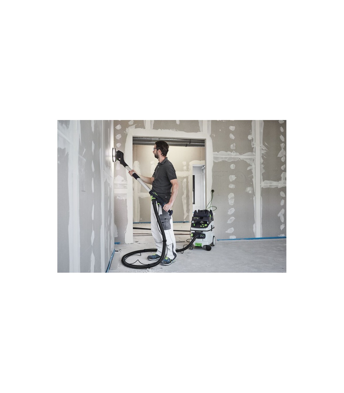 La ponceuse à bras PLANEX LHS 2 225 CTL 36 est conçue pour un ponçage professionnel des murs et plafonds, combinant technologie LED intégrée et aspiration autoportée pour un confort optimal. Son éclairage périphérique rasante met en évidence toutes les aspérités, garantissant un travail précis et efficace, sans rayures ni marques.