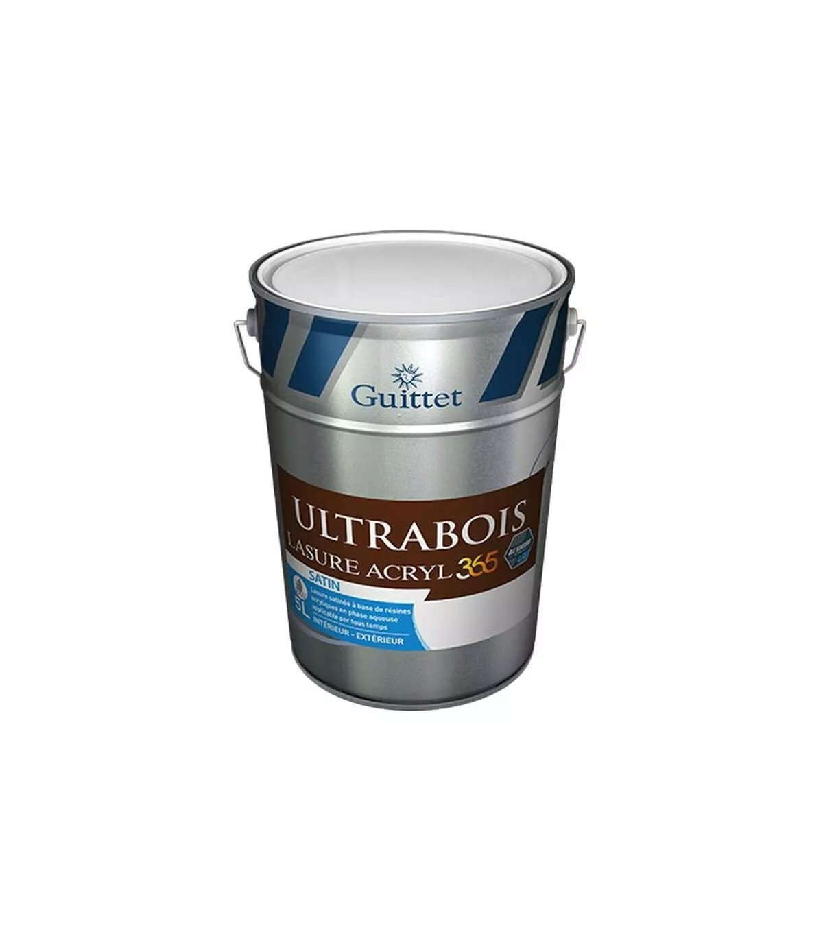 C'est une peinture d'intérieur et extérieur microporeuse. La peinture Guittet Ultrabois Lasure Acryl 365 adhère directement sur tout support humide (non condensant, non ruisselant et non gelé). Cette lasure satinée est applicable de 2°C à 30 °C jusqu’à 85 % d’humidité relative.