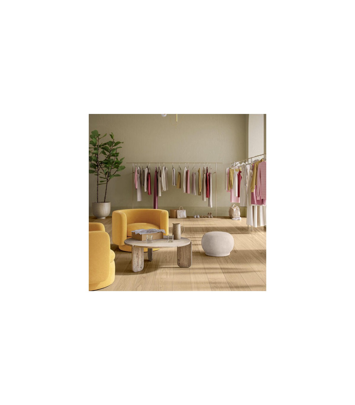 Grâce à ses dimensions généreuses de 2200 x 210 x 10 mm, ce parquet structure les espaces avec fluidité et renforce la sensation de volume dans les grandes pièces. Il s’intègre parfaitement dans les projets résidentiels modernes, ouverts et lumineux.