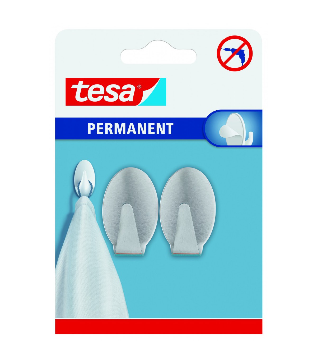 tesa® Crochets Permanents Métal Ovale en acier inoxydable brossé et conçus pour une fixation permanente. Parfaits pour suspendre les serviettes - avec une touche d'élégance.