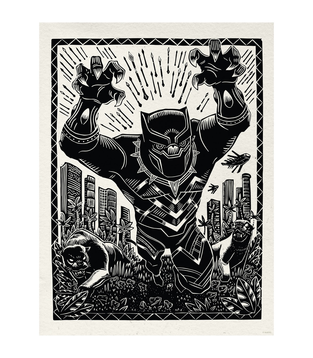 MARVEL BLACK PANTHER LINO-CUT CHARGE 30X40
