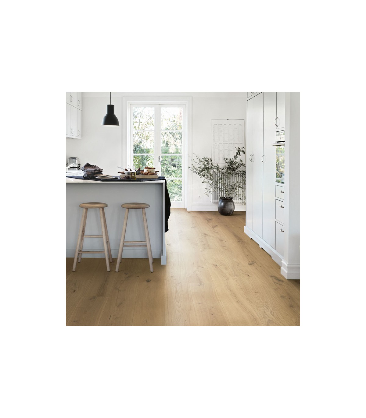 Le Parquet Svalbard Chêne Sublime se distingue par sa teinte chêne chaleureuse et profonde, idéale pour créer une ambiance élégante et enveloppante. Ses longues lames de 2200 x 220 mm accentuent la sensation d’espace et apportent une allure spectaculaire et contemporaine à votre pièce. Subtilement chanfreiné, il met en valeur le veinage naturel du bois pour un rendu authentique et haut de gamme. Avec une couverture de 1,94 m² par paquet, ce parquet s’adapte parfaitement aux intérieurs sophistiqués, classiques ou modernes, tout en affirmant la grandeur intemporelle du chêne.