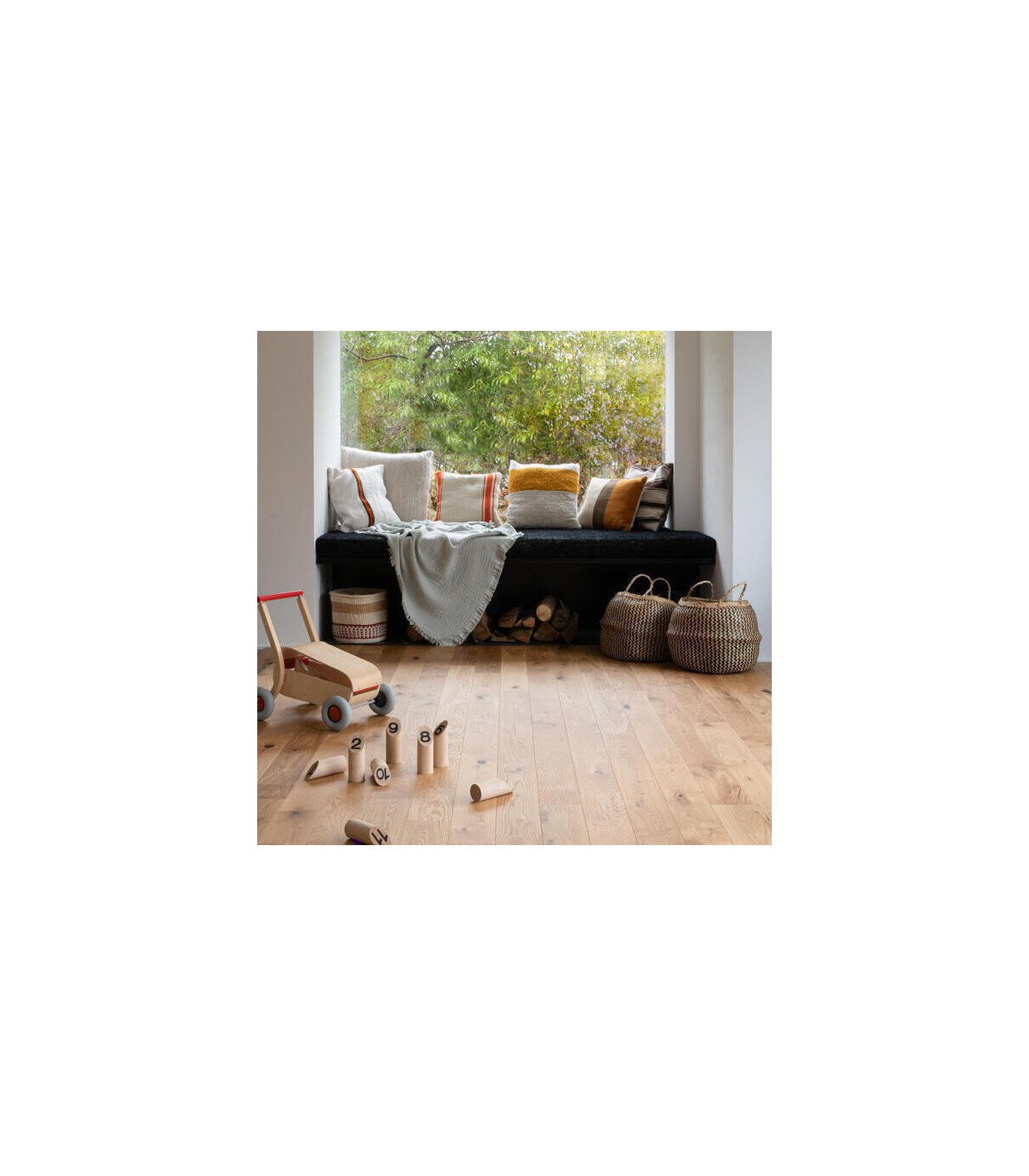 Le parquet se nettoie facilement avec un balai ou une serpillière légèrement humide grâce à sa finition mate protégée.