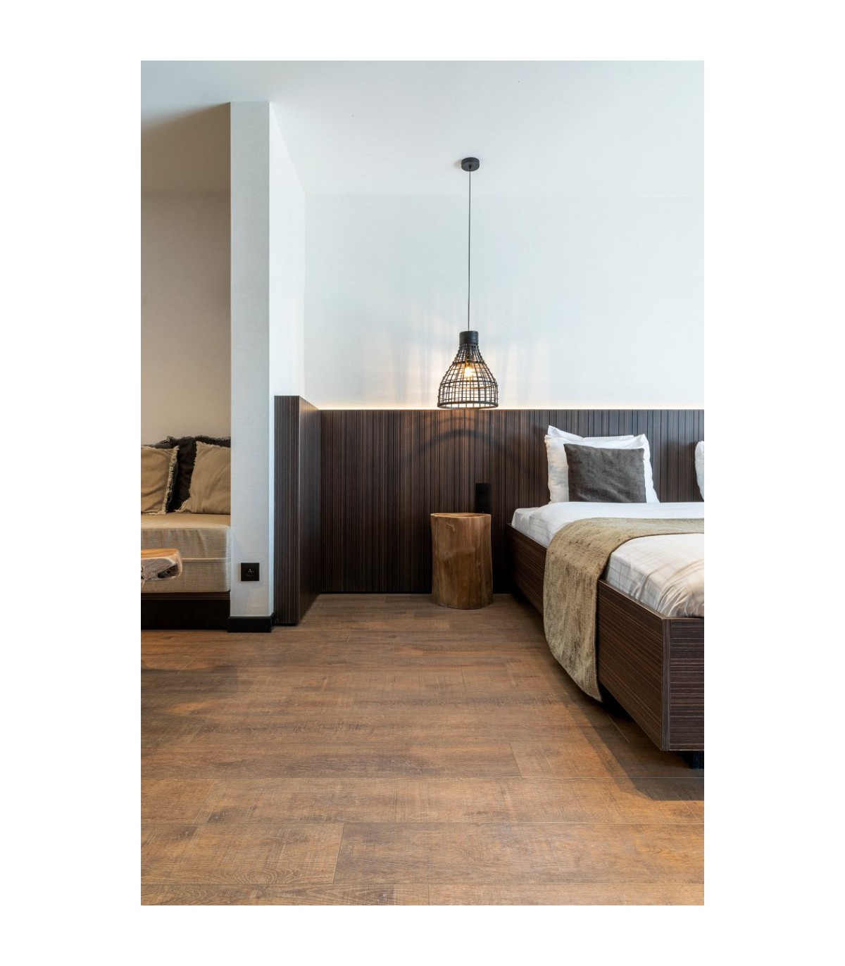 Les lames PVC Naturals 1200+ Bark apportent une ambiance chaleureuse et un style contemporain à votre intérieur. Leur bois foncé élégant et leur texture réaliste offrent un rendu naturel et raffiné.