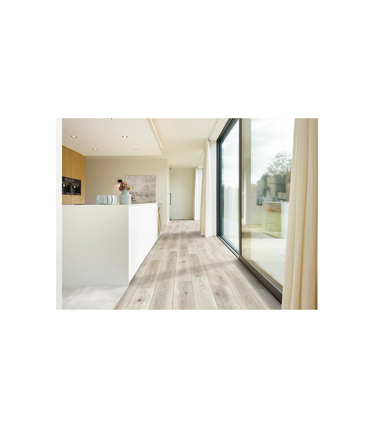 Nettoyage facile avec un balai ou une serpillière légèrement humide. Protection recommandée avec patins sous meubles et tapis d’entrée.