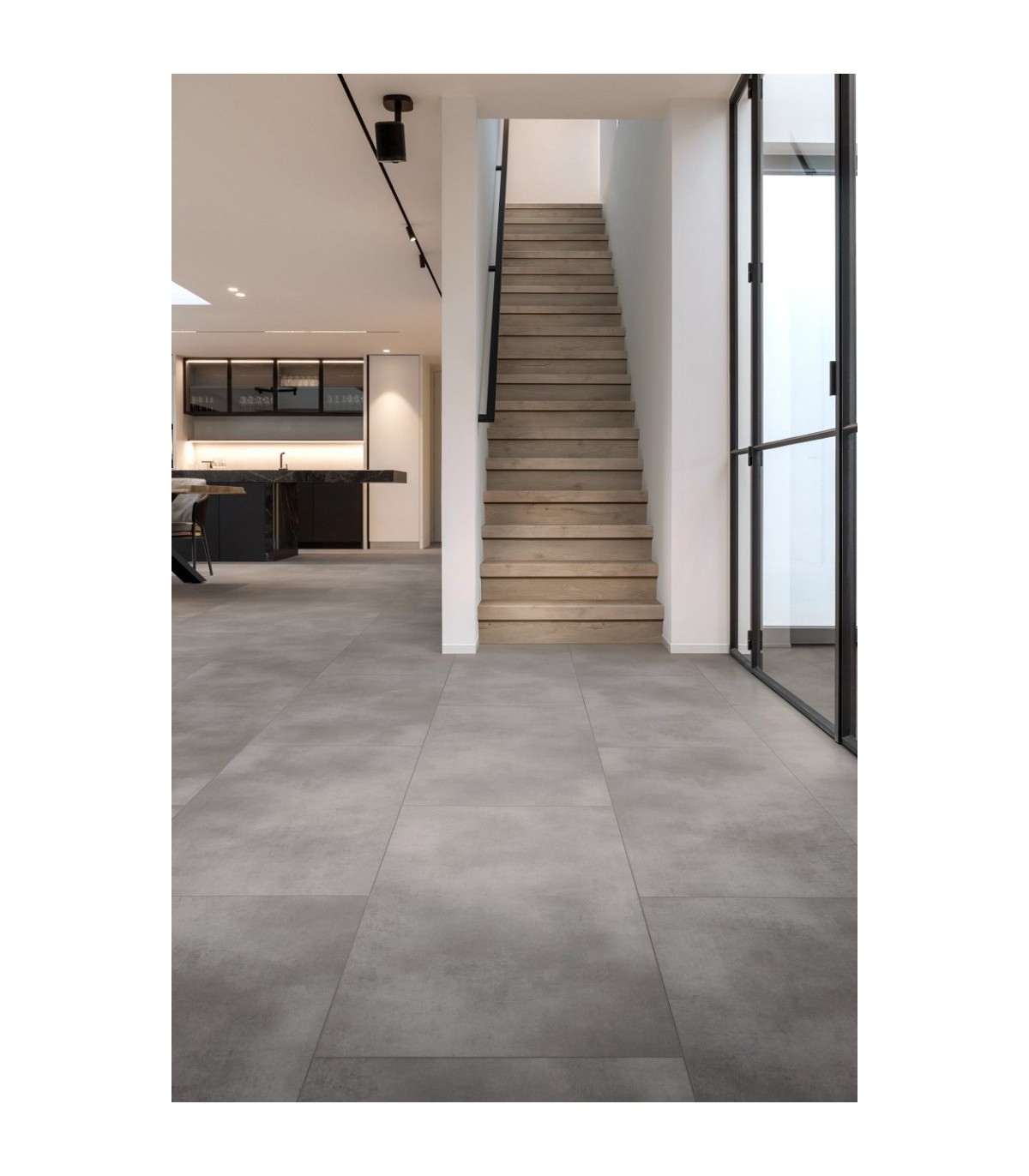 Les dalles PVC Coretec Naturals Tile+ Matterhorn se nettoient facilement avec un balai ou une serpillière légèrement humide. L’utilisation de patins sous les meubles et de tapis d’entrée résistants contribue à préserver leur apparence dans le temps.