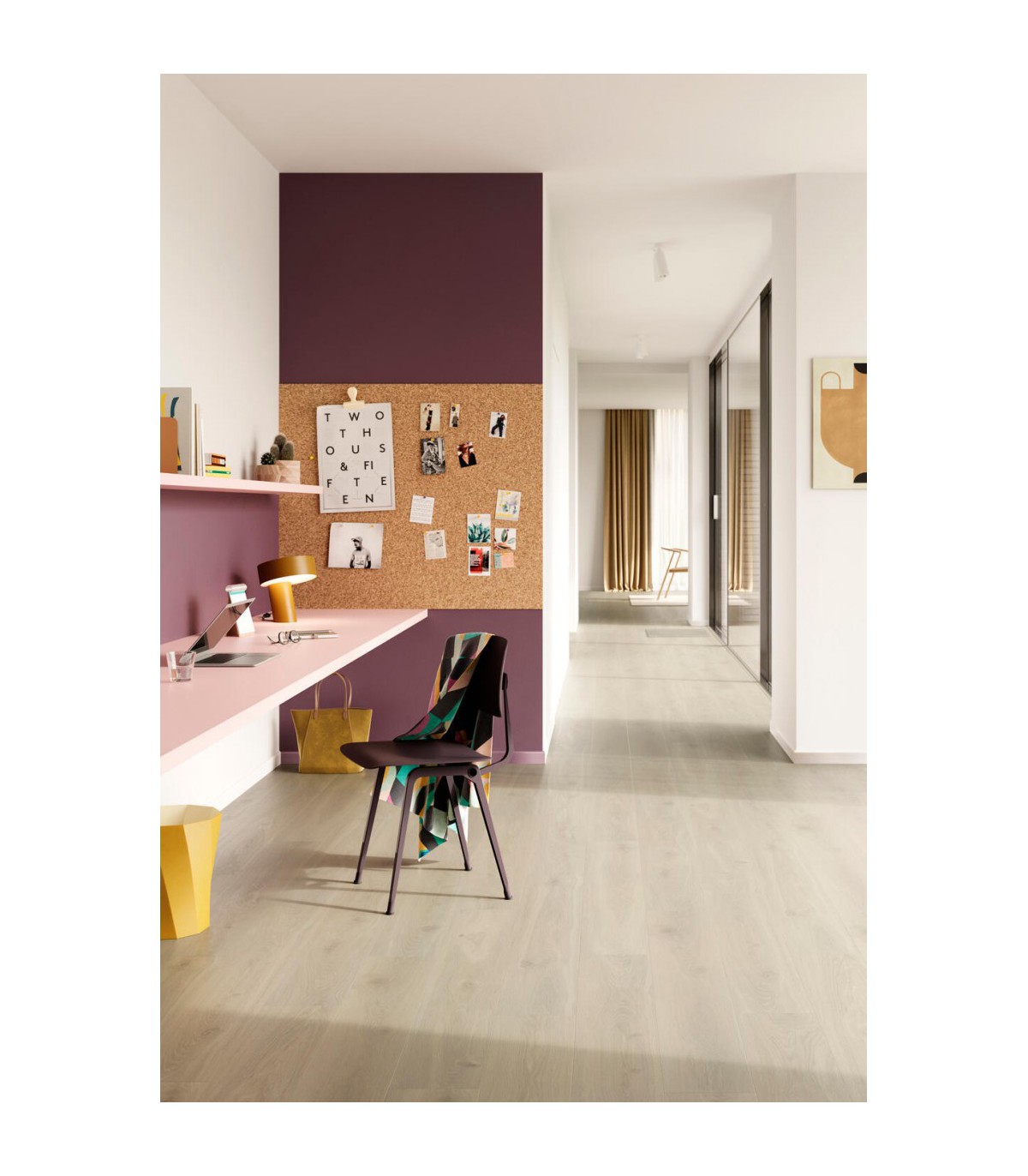 La teinte Bloom Sand Natural apporte une chaleur douce et lumineuse à votre intérieur. Ses nuances claires et naturelles mettent en valeur le relief du parquet stratifié, tout en s’adaptant à tous les styles, du contemporain au scandinave. Elle agrandit visuellement vos pièces et crée une ambiance accueillante et élégante.
