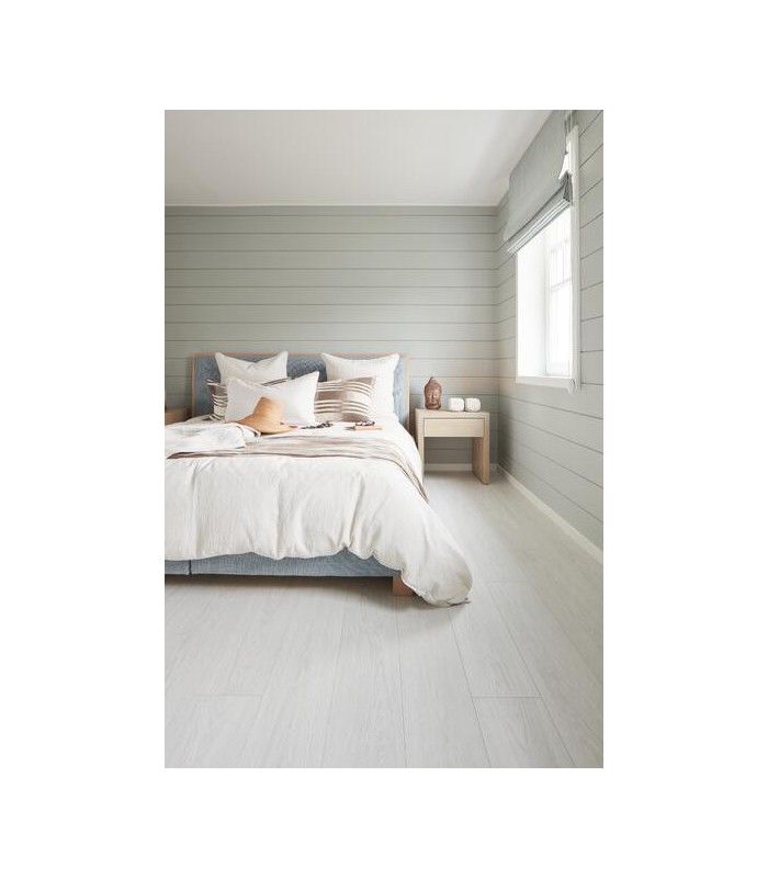 La teinte Charme White illumine instantanément la pièce et agrandit visuellement l’espace. Son blanc doux s’adapte à tous les styles, du contemporain au scandinave, et crée un sol raffiné et chaleureux. Les légères nuances naturelles de la décoration renforcent l’effet parquet authentique et apportent un rendu élégant et aérien.