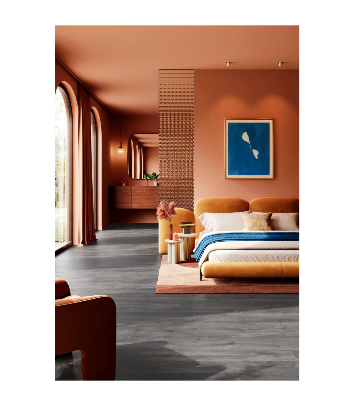 La teinte Gyant Light Grey apporte sobriété et luminosité aux intérieurs. Ses nuances délicates de gris clair créent un effet spacieux et moderne, idéal pour les styles contemporains ou scandinaves. L’effet visuel des lames 8V4 avec chanfreins confère un rendu fluide et harmonieux, donnant l’impression d’un parquet naturel authentique.