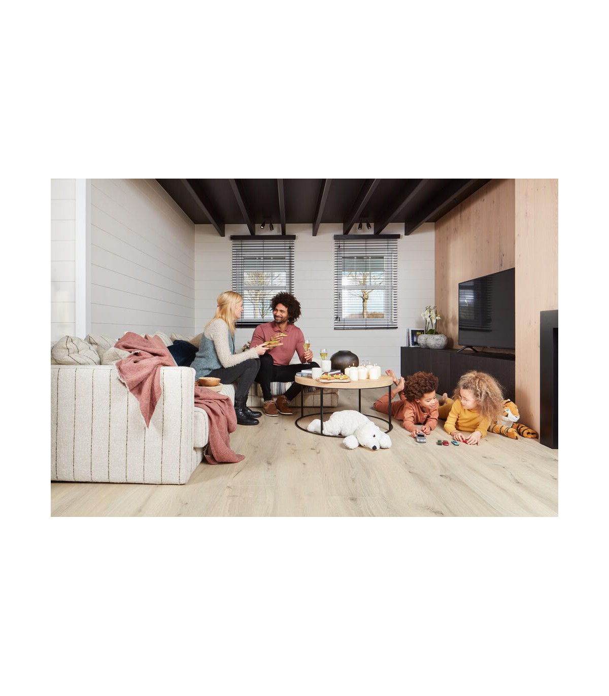 La teinte Gyant Light Natural illumine les espaces grâce à ses nuances claires et douces. Elle apporte légèreté et fluidité à vos pièces, idéale pour un style contemporain ou scandinave. Les lames 8V4 avec chanfreins renforcent l’effet visuel d’un parquet authentique et élégant.