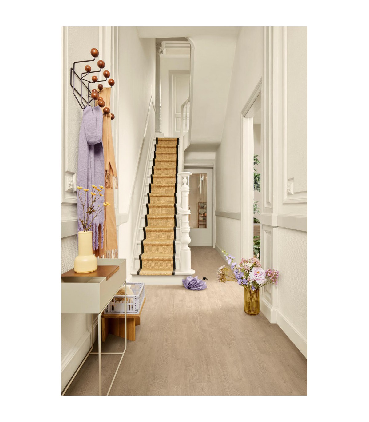La teinte Jazz Sand Natural révèle des nuances de bois sable clair, offrant luminosité et chaleur à votre intérieur. Adaptée aux styles contemporains et scandinaves, elle agrandit visuellement les pièces et crée une atmosphère accueillante. Les lames XL avec chanfreins apportent fluidité et élégance à votre sol.