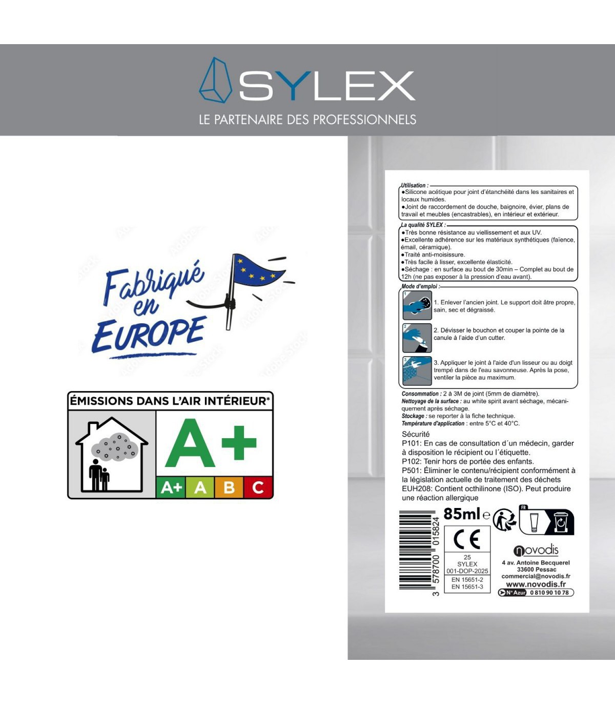 - ✅ Excellente adhérence sur céramique et verre