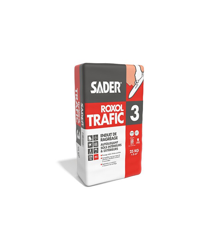 Roxol Trafic 3 est enduit de ragréage de sol autolissant prêt au mouillage pour sol intérieur, recommandé dans les locaux à trafic intense classés P3 au plus.