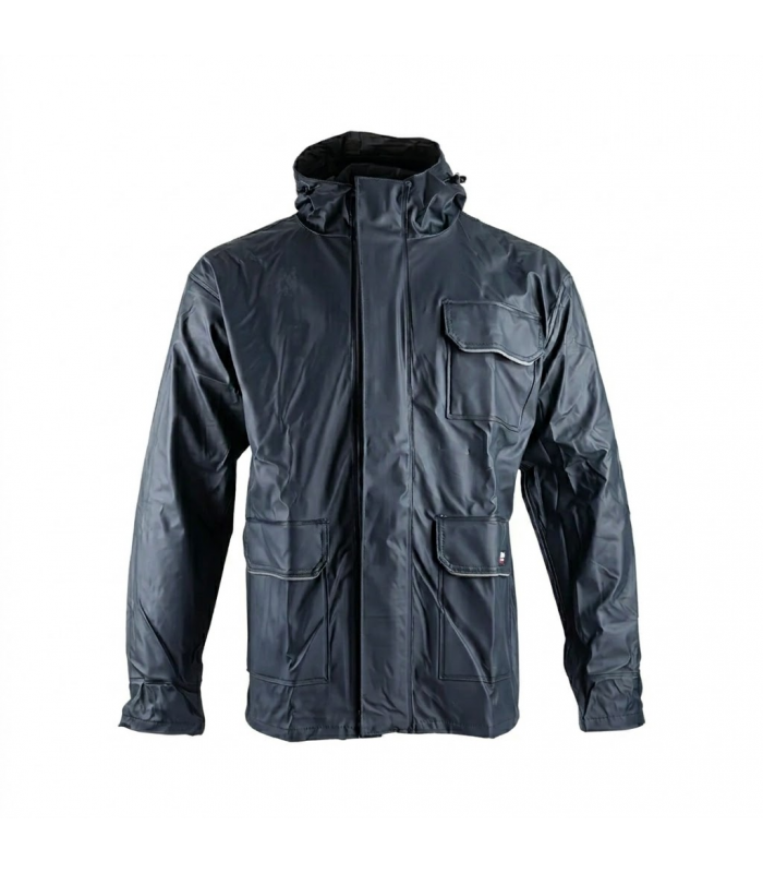 Fabriquée dans un tissu polyester de 360g/m² avec enduction PVC/PU, cette veste crée une barrière efficace contre la pluie et le vent. Ses coutures thermosoudées et sa fermeture à zip injecté protégée par une double patte de pression assurent une étanchéité maximale, tandis que des détails rétro-réfléchissants améliorent la visibilité de l’utilisateur par faible luminosité.
