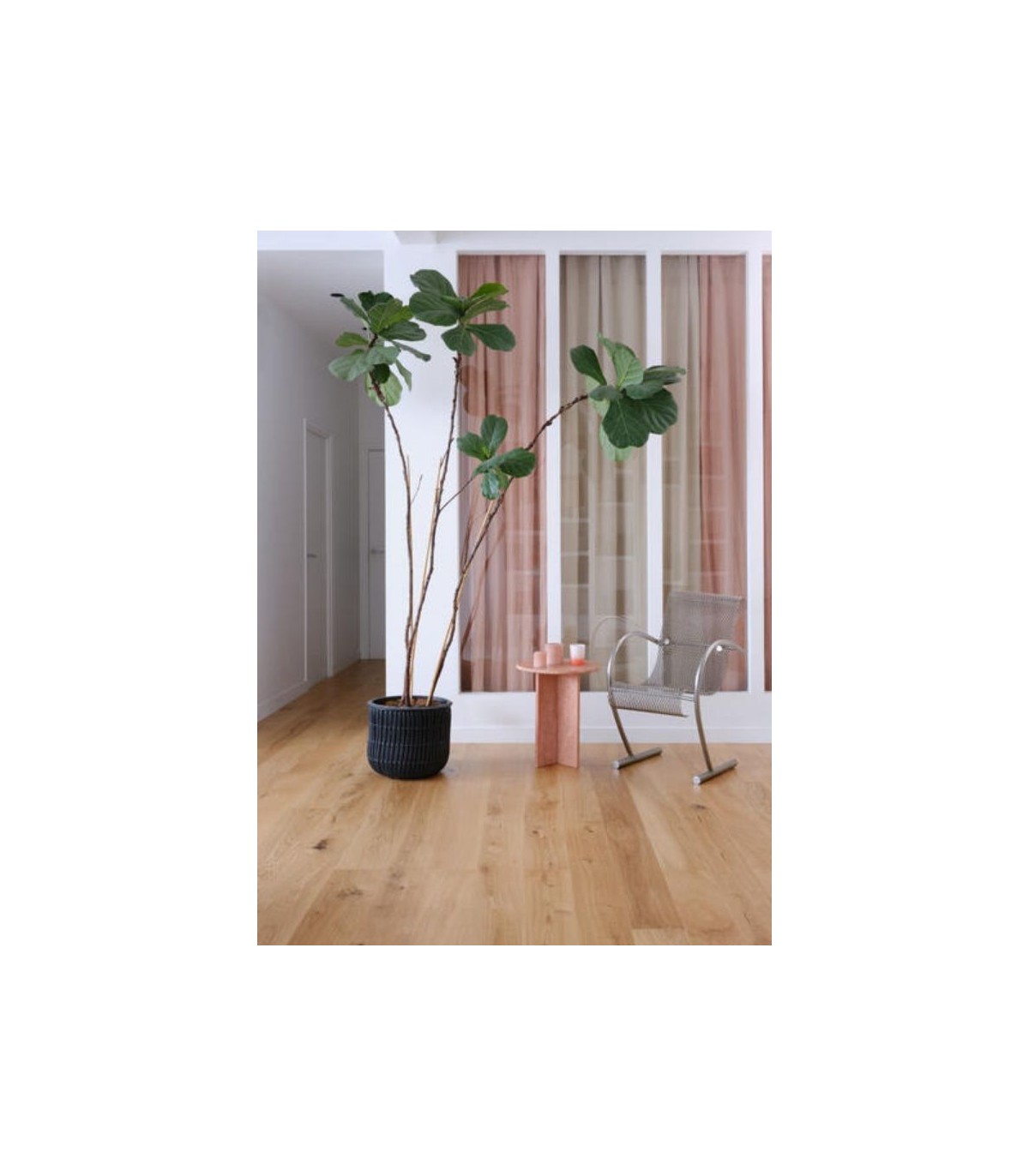 Les différents formats de lames disponibles permettent de créer des ambiances variées et d’adapter le parquet à tous les volumes de pièce. Des lames longues aux formats larges et extra larges, chaque configuration permet d’accentuer la perspective des espaces et d’apporter une sensation d’ouverture et de prestige à l’intérieur.
