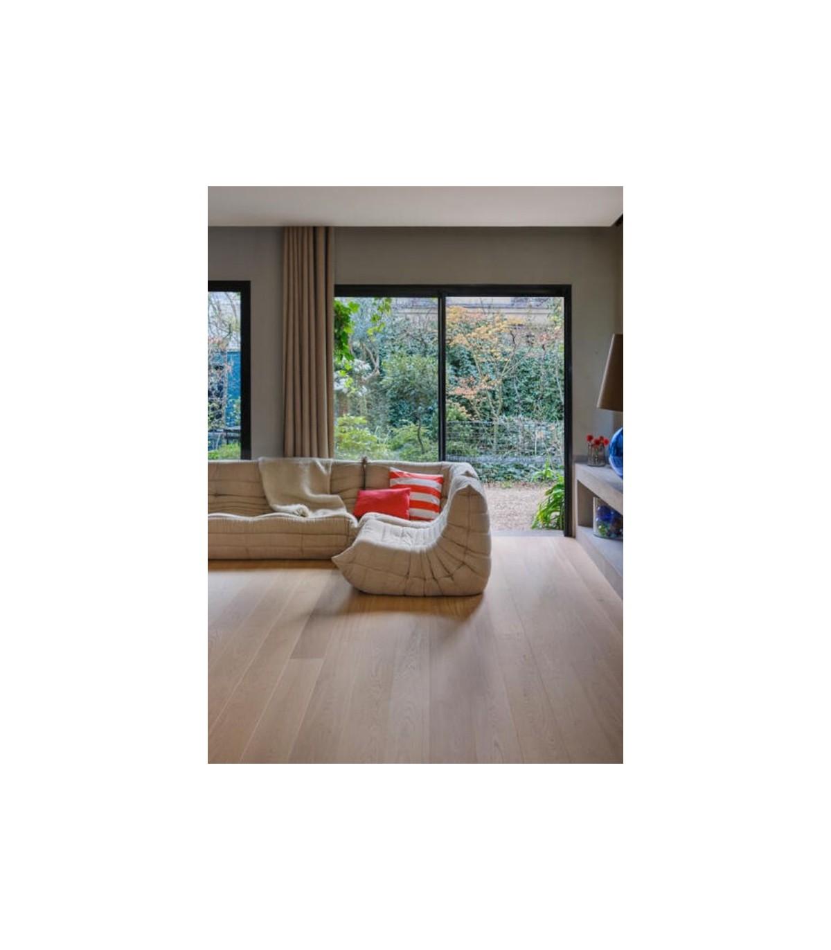 Les différents formats de lames disponibles permettent de créer des ambiances variées et d’adapter le parquet à tous les volumes de pièce. Des lames longues aux formats larges et extra larges, chaque configuration permet d’accentuer la perspective des espaces et d’apporter une sensation d’ouverture et de prestige à l’intérieur.